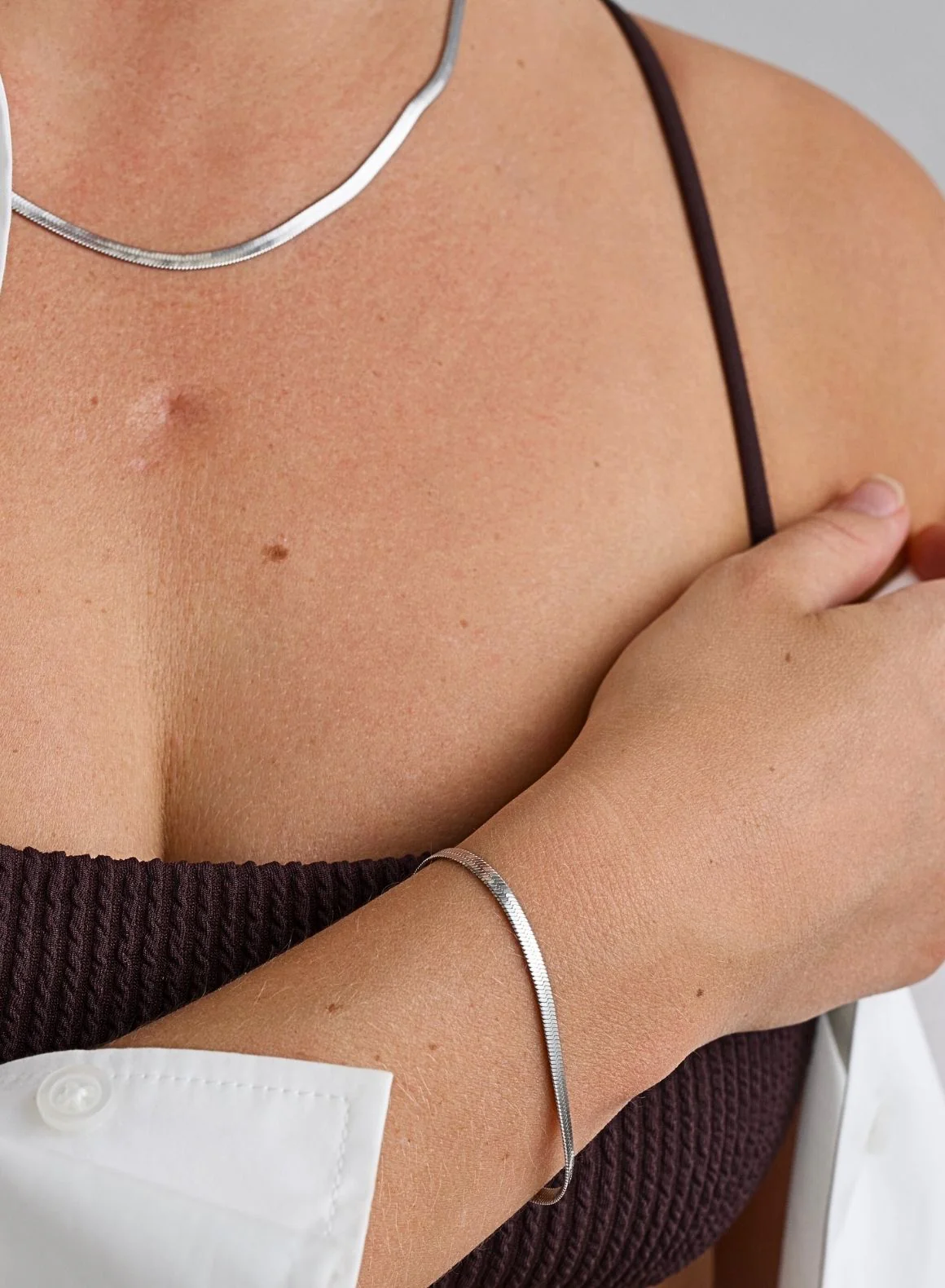 This waterproof necklace is made from silver-plated stainless steel and is designed to shower, swim and work out in without the risk of tarnishing or fading. The Waterproof Necklace has a hook closure at the back and a small aim’n logo badge. The perfect durable piece for your daily life!